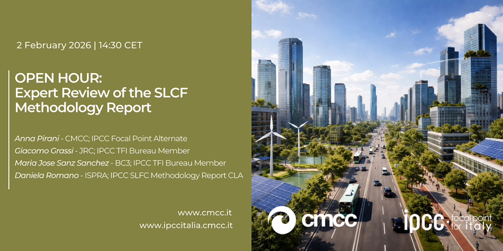 Save the date for the Open Hour webinar on how to register as an IPCC expert reviewer. The webinar is hosted by CMCC on Tuesday, February 2nd, at 2.30 – 3.30 pm. Moderated by Anna Pirani (CMCC and Focal Point alternate for Italy, the webinar will feature Giacomo Grassi (Joint Research Centre, JRC) and the Methodology Report on SLCF authors Maria Jose Sanz Sanchez (IPCC TFI Bureau member) and Daniela Romano (ISPRA).